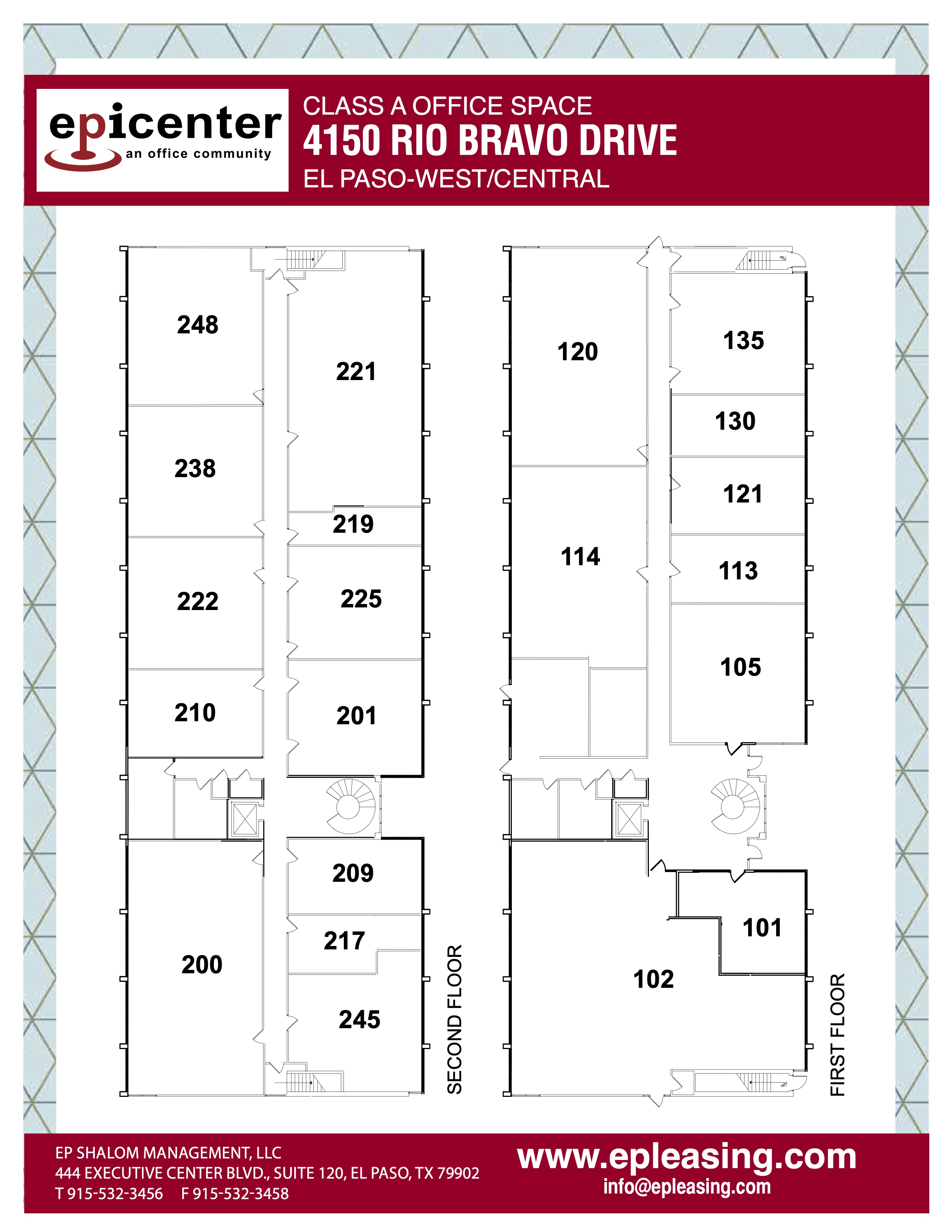 Experience the pinnacle of suburban professional office space at 4150 Rio Bravo Drive, Epicenter’s premier two-story Class A building. With approximately 24,242 square feet of sophisticated office space, floor-to-ceiling windows showcasing breathtaking Franklin Mountain views, and modern architectural design, this building represents the ultimate business address for organizations seeking to make a powerful statement.